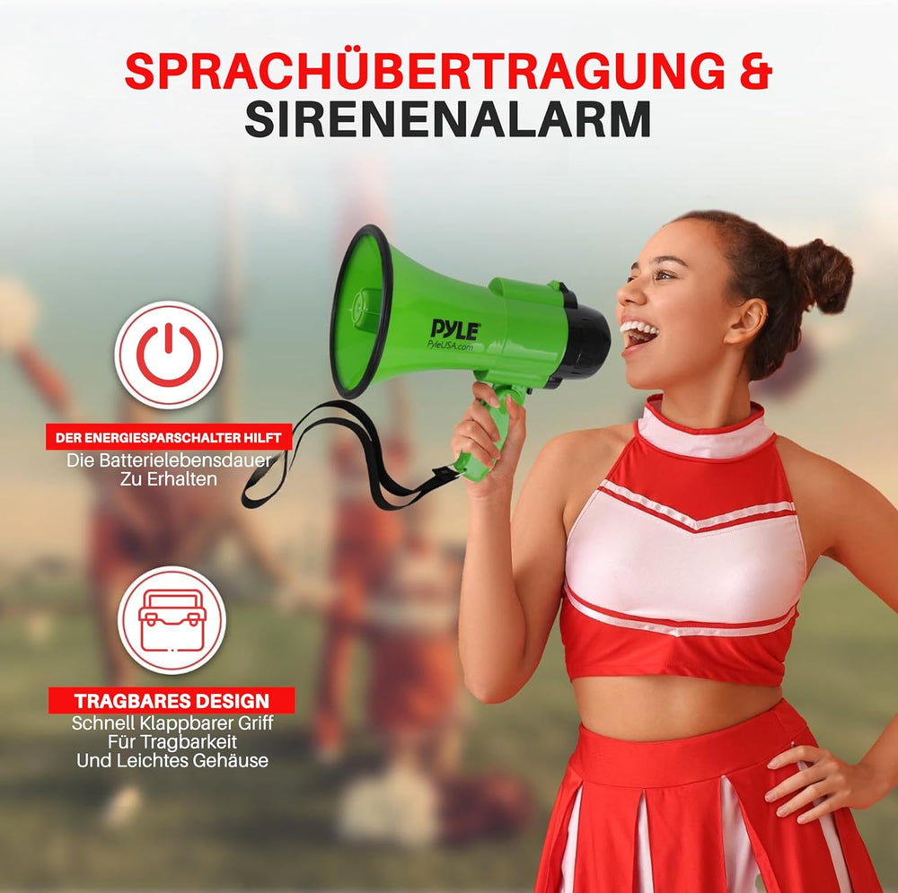 Pyle Megafon 30W mit Sirene & Mikrofon, Grün Faltbares Megaphone für Kinder & Erwachsene, Lautsprech