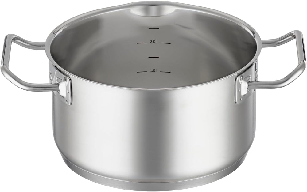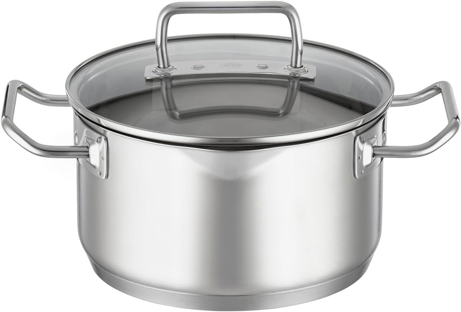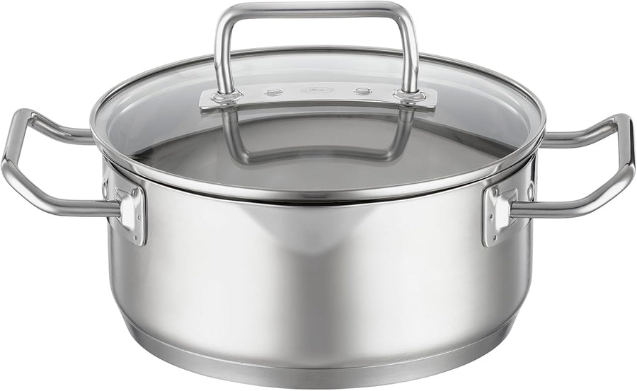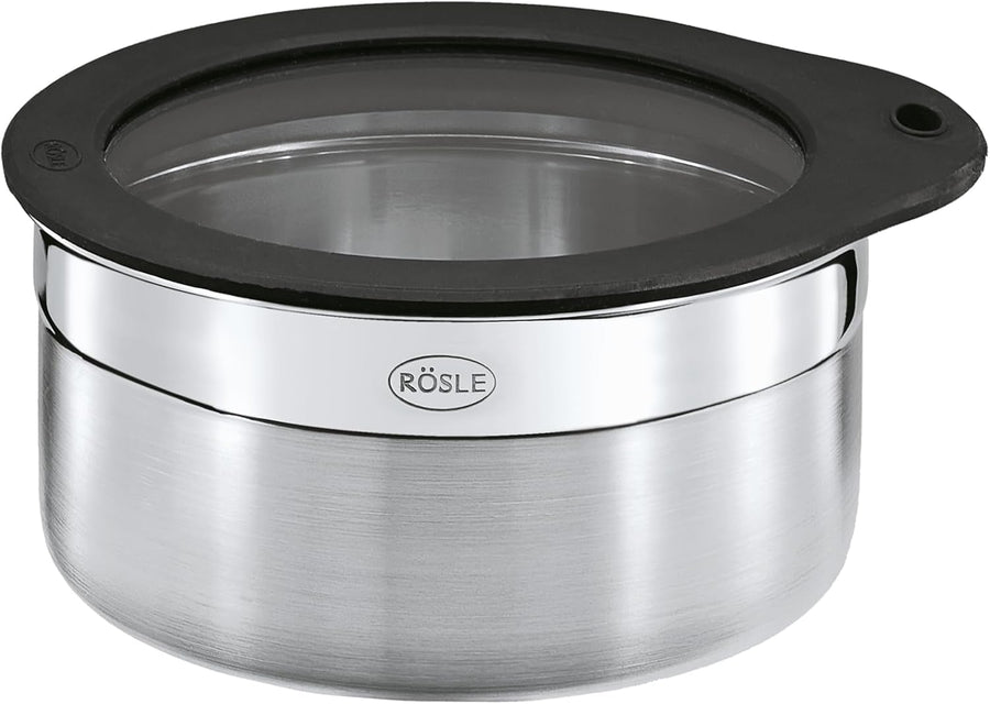 RÖSLE EXPERTISO Schmortopf, Universal-Garbehälter aus Edelstahl 18/10, 20 cm, Glasdeckel, Innenskali