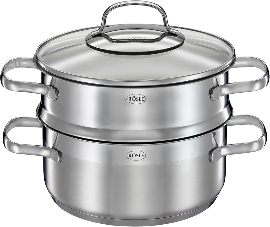 RÖSLE ELEGANCE Dämpfer Ø 20 cm, Edelstahl 18/10, Schüttrand, Innenskalierung, Glasdeckel, induktions