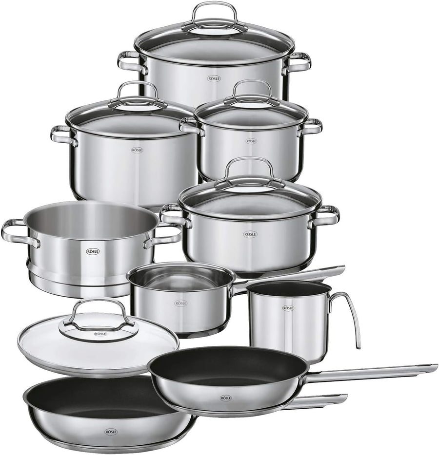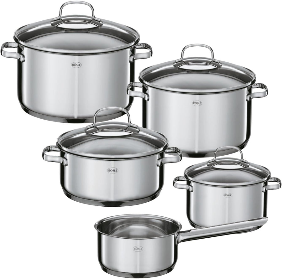 RÖSLE ELEGANCE Topfset 10-tlg., 6 hochwertige Kochtöpfe, 1 Dämpfeinsatz, 2 Bratpfannen im Set, Edels