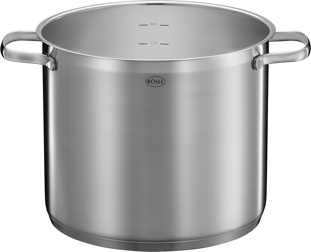 RÖSLE ELEGANCE Gemüse/Partytopf, Hochwertiger Edelstahltopf zum Kochen grosser Mengen, 8 Liter, Edel