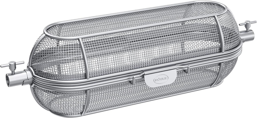RÖSLE Drehspiesskorb, Hochwertiger Grillspiesskorb für Kartoffelspalten und Gemüsewürfel, passend zu