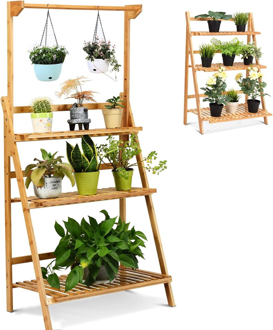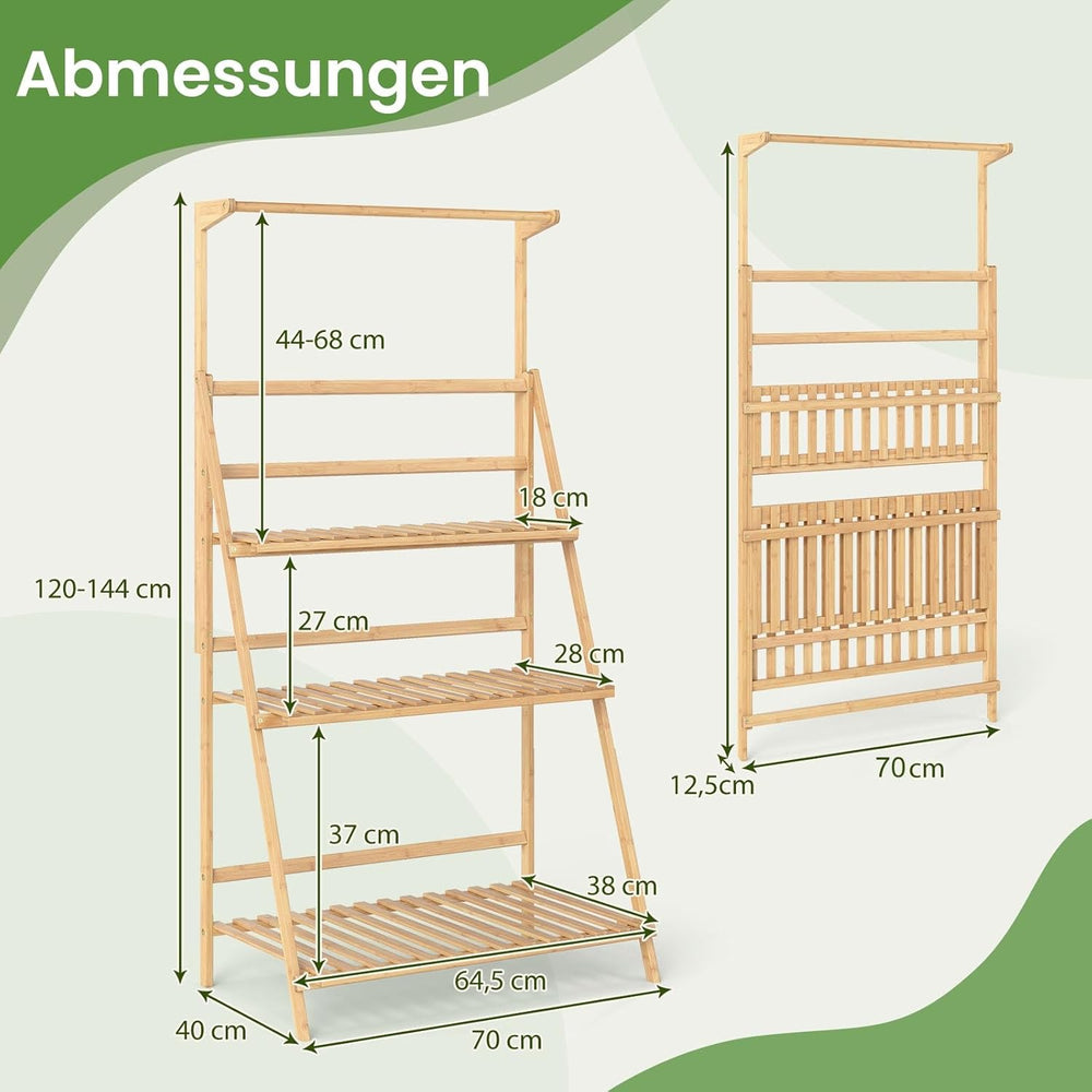RELAX4LIFE Pflanzenleiter Bambus, robuste Pflanzenständer 3 Etagen, Pflanzenregal mit höhenverstellb