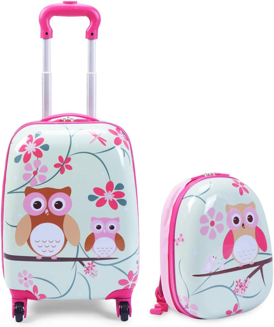RELAX4LIFE Kinderkoffer mit Rollen, 2 TLG Kinder Kofferset, Koffer(16 inch) + Rucksack(12 inch), Rei
