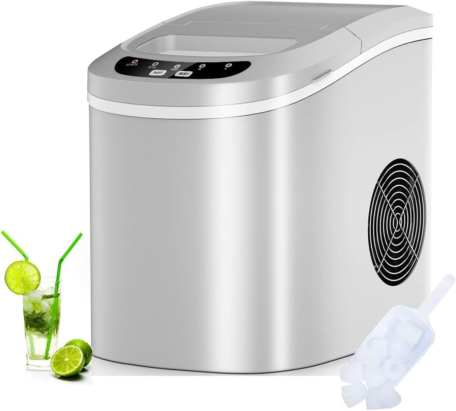 RELAX4LIFE Eiswürfelmaschine, Eismaschine mit Eiswürfelschaufel & Eiskorb, 12 kg in 24 Std, 9 Eiswür