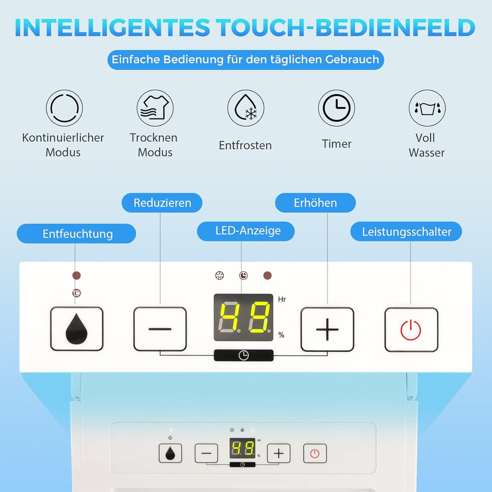 RELAX4LIFE Luftentfeuchter Elektrisch 12L/24h, Raumentfeuchter mit LED Display, Timer - Gegen Feucht
