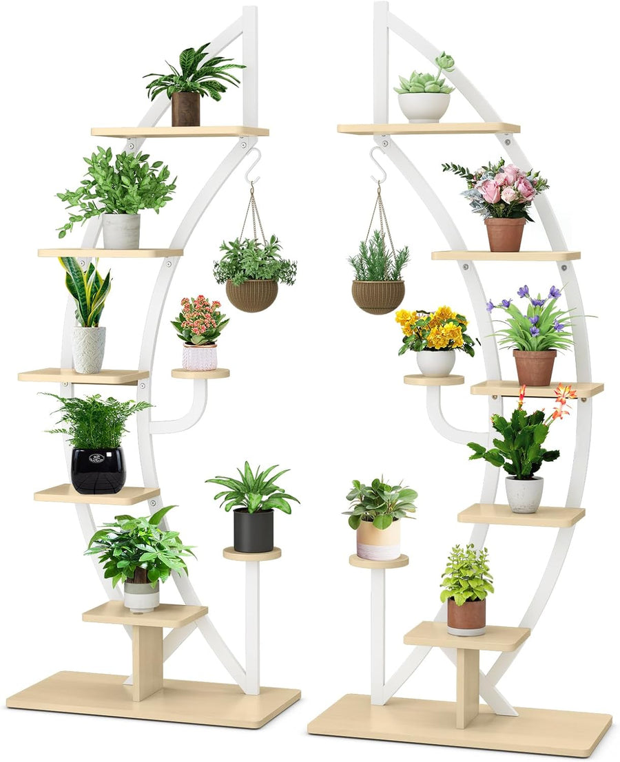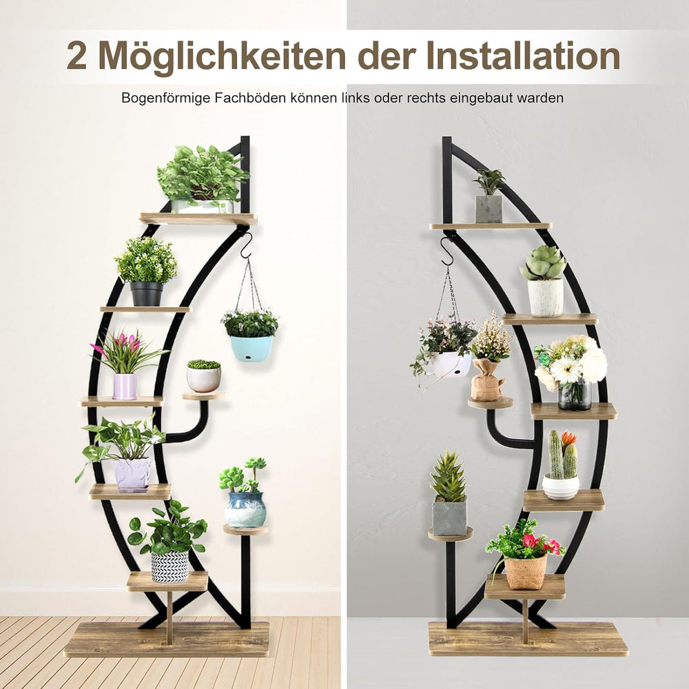 RELAX4LIFE Pflanzenständer Halbmondförmig, 6-Stufiges Blumenregal mit Ablagen Haken, Blumenständer m