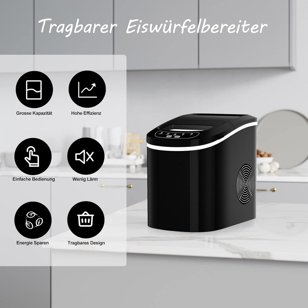 RELAX4LIFE Eiswürfelmaschine, Ice Maker mit Schaufel, 9 Eiswürfel in 8 min, 12 kg in 24 Std., 1,85L