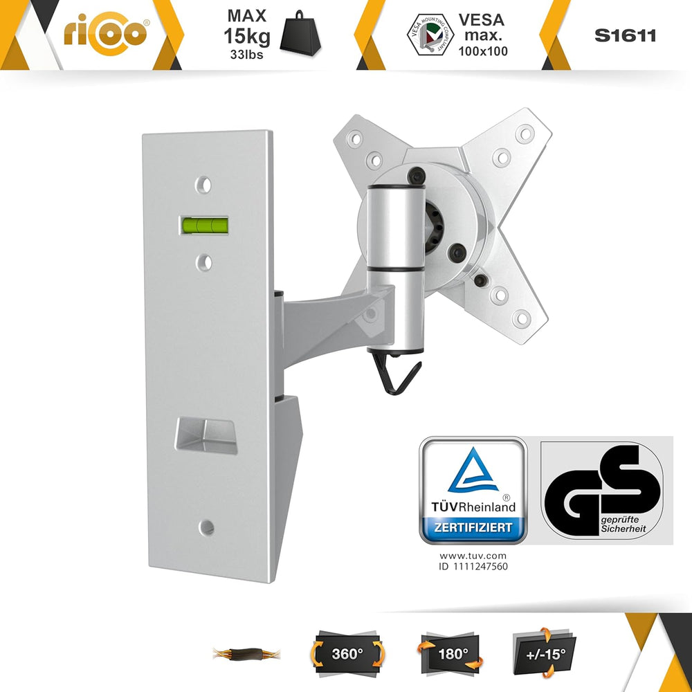 RICOO PC Monitor Wandhalterung Schwenkbar Neigbar für 15-30 Zoll, Halterung Wand S1611, Monitorhalte