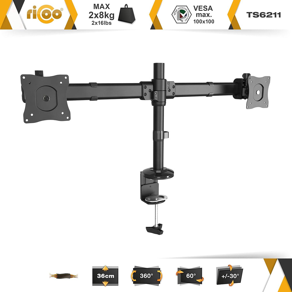 RICOO Monitorhalterung 2 Monitore Monitorarm Monitor Halterung Tisch TS7811 Arme für Computermonitor