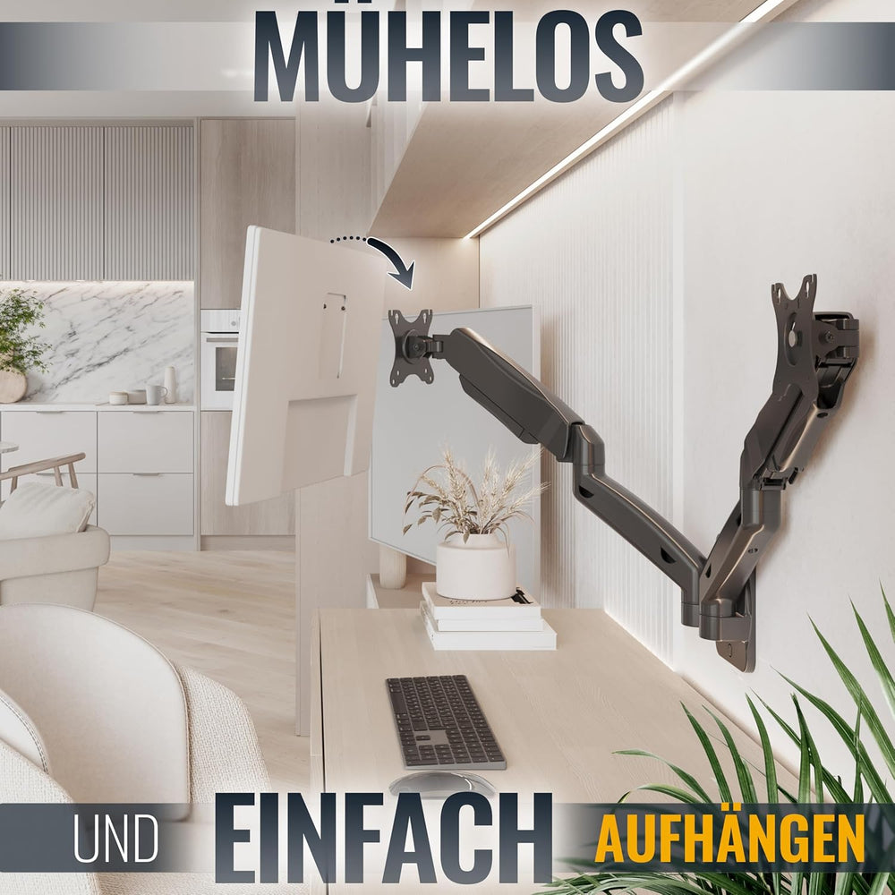 RICOO PC Monitor Wandhalterung höhenverstellbar Gasfeder Schwenkbar Neigbar für Bildschirm 17-32 Zol