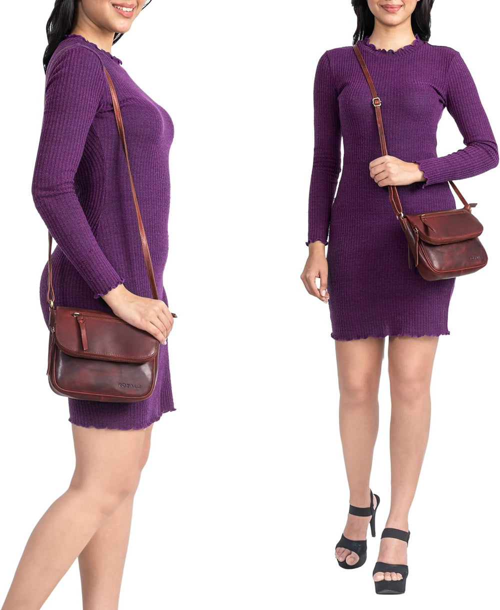 ROYALZ 'Madison' Vintage Handtasche Damen Umhängetasche klein kompakte Ledertasche Schultertasche Te