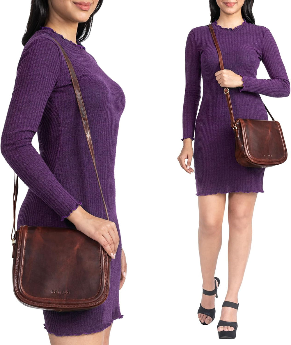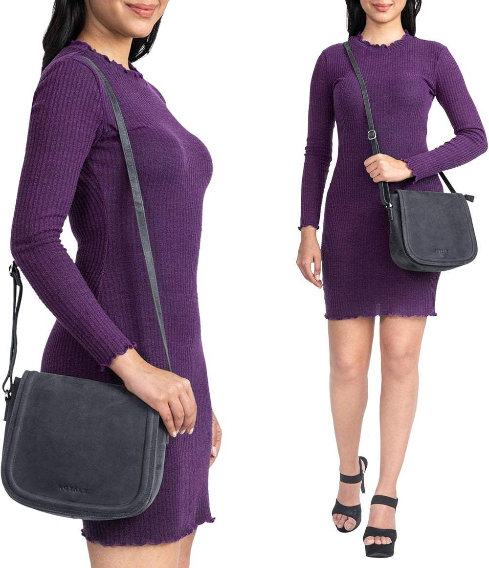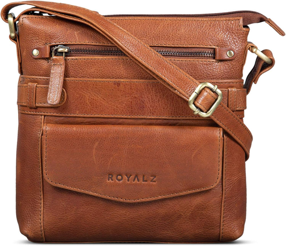 ROYALZ 'Virginia' Handtasche Damen Umhängetasche Leder Flache Echtleder Schulter Frauen Crossbody Ba