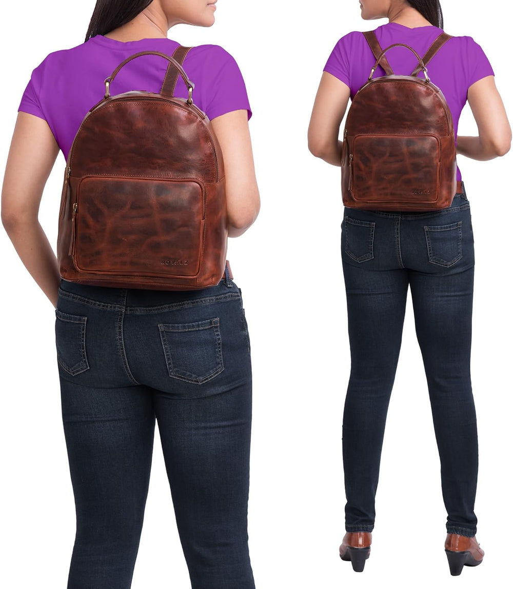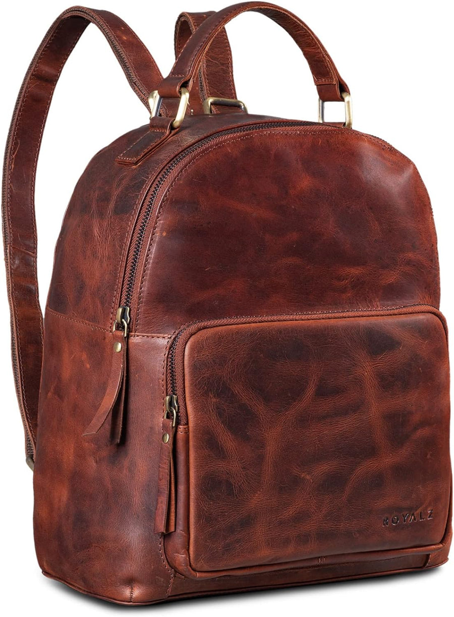 ROYALZ 'Topeka' Vintage Leder Rucksack Damen Casual Daypack Tagesrucksack Echtleder Kleiner Cityruck