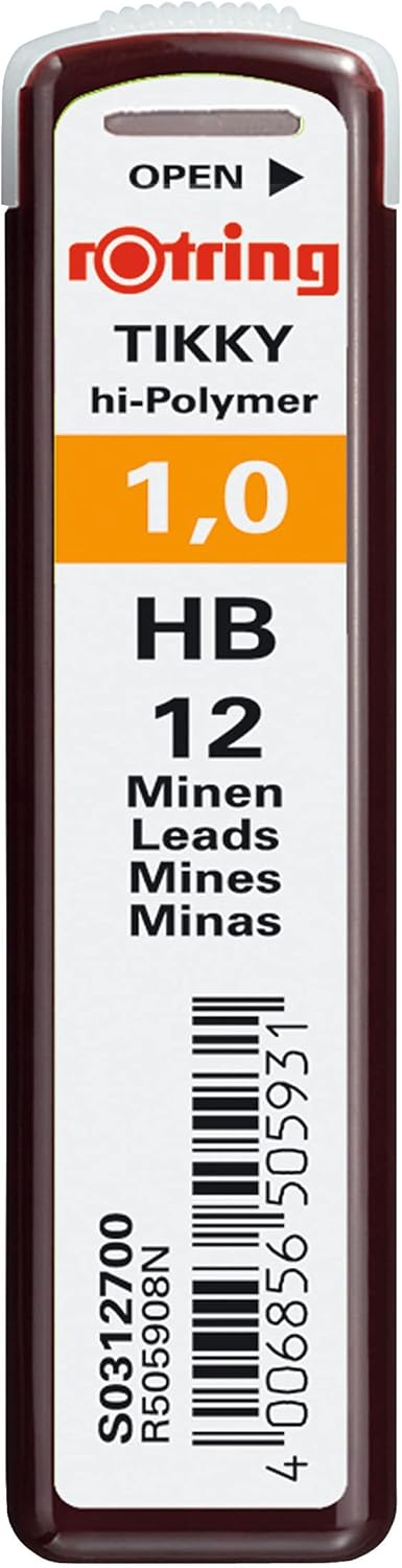 rOtring Tikky-Druckbleistift | Nachfüllminen | 1,0 mm | HB | 10 Stück (120 Minen) 1,0 mm HB, 1,0 mm