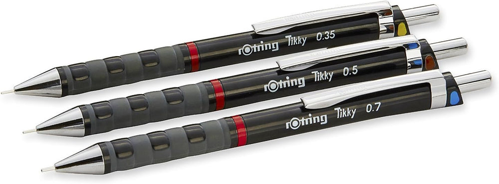 rOtring Tikky 3er Set mit Colourcode 0,35/0,5/0,7 mm (inkl. 3 Dosen Ersatzminen HB + Radierer B20)