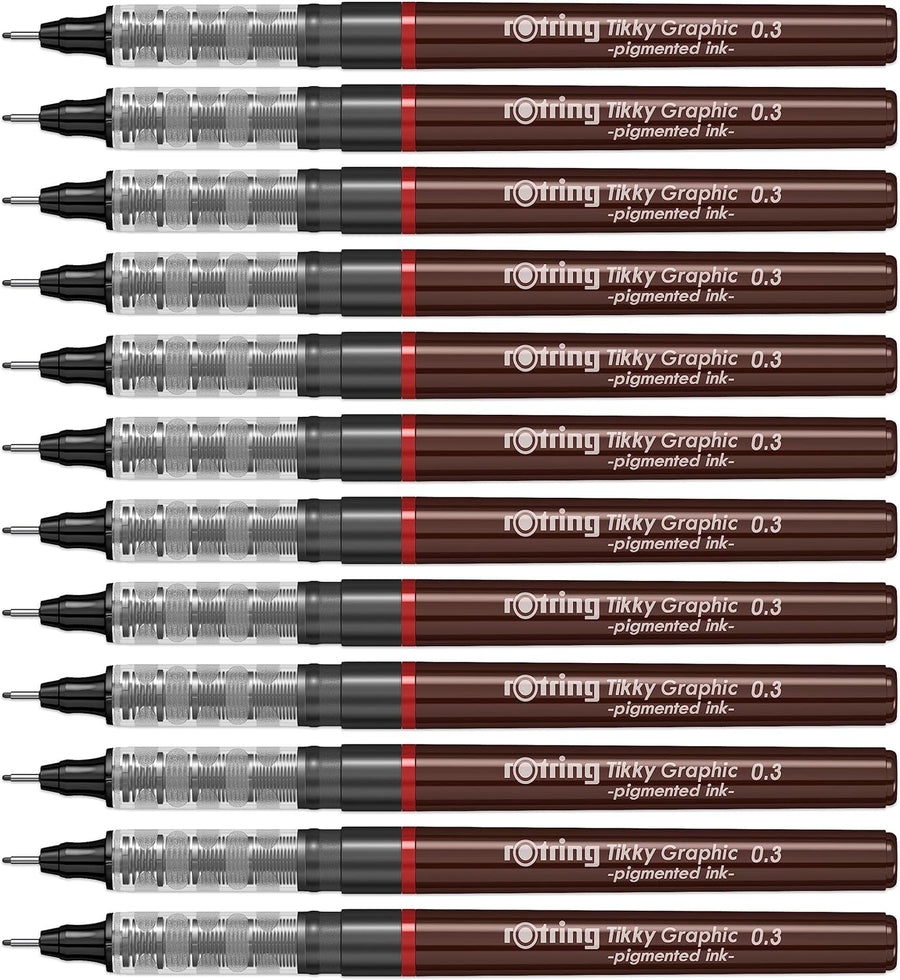 rOtring Tikky-Grafik Fineliner Filzstifte | 0,3 mm | schwarze Tinte | 12-er Box 0.3 bordeaux, 0.3 bo