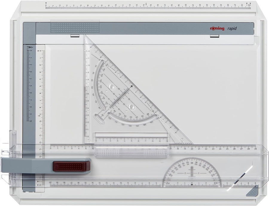 rOtring Rapid A4 Zeichenplatte Professioneller Zeichenbrett mit Lineal und Zeichendreieck Rapid Zeic