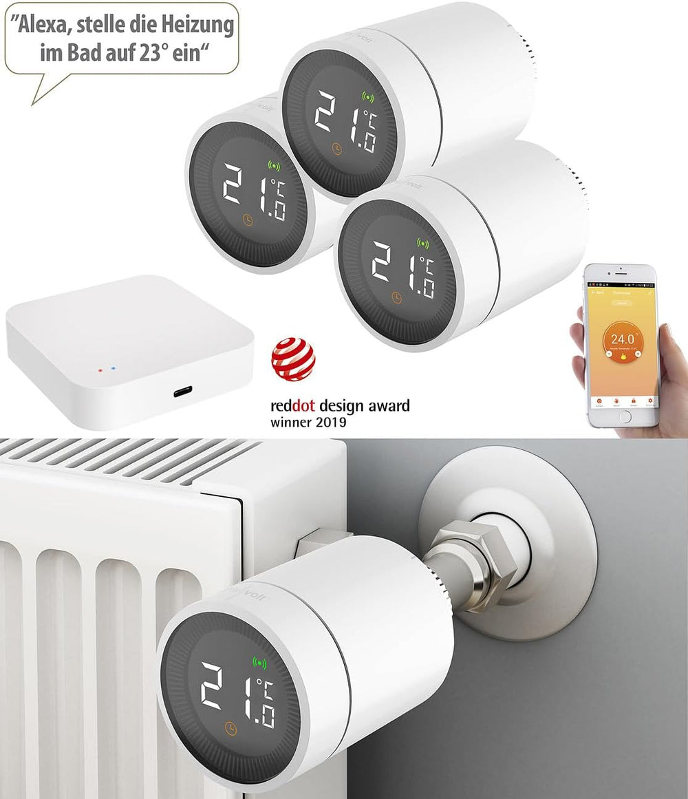 revolt Thermostat: 3er-Set Heizkörperthermostate mit App, Sprachsteuerung, ZigBee-Gateway (ZigBee Th