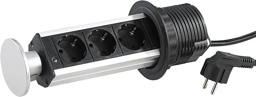 revolt Steckdose Küche: Versenkbare Tisch-3-fach-Steckdosenleiste im Alu-Gehäuse, Ø 78 mm (Versenkba