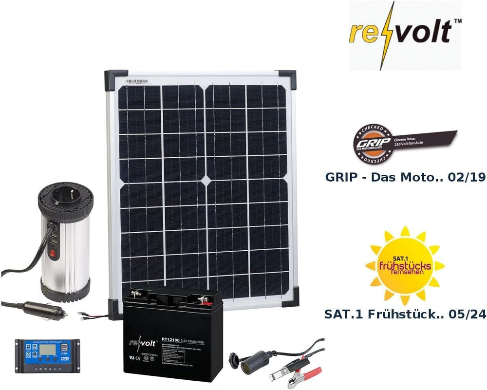 revolt Solarpanel 20 Watt: Solarpanel (20 W) mit Akku, Laderegler und 230-V-Wandler (Solarpanel mit