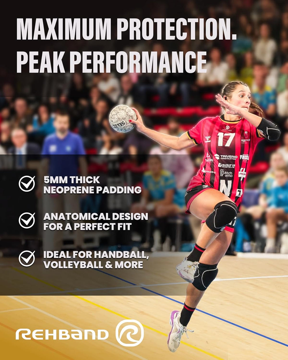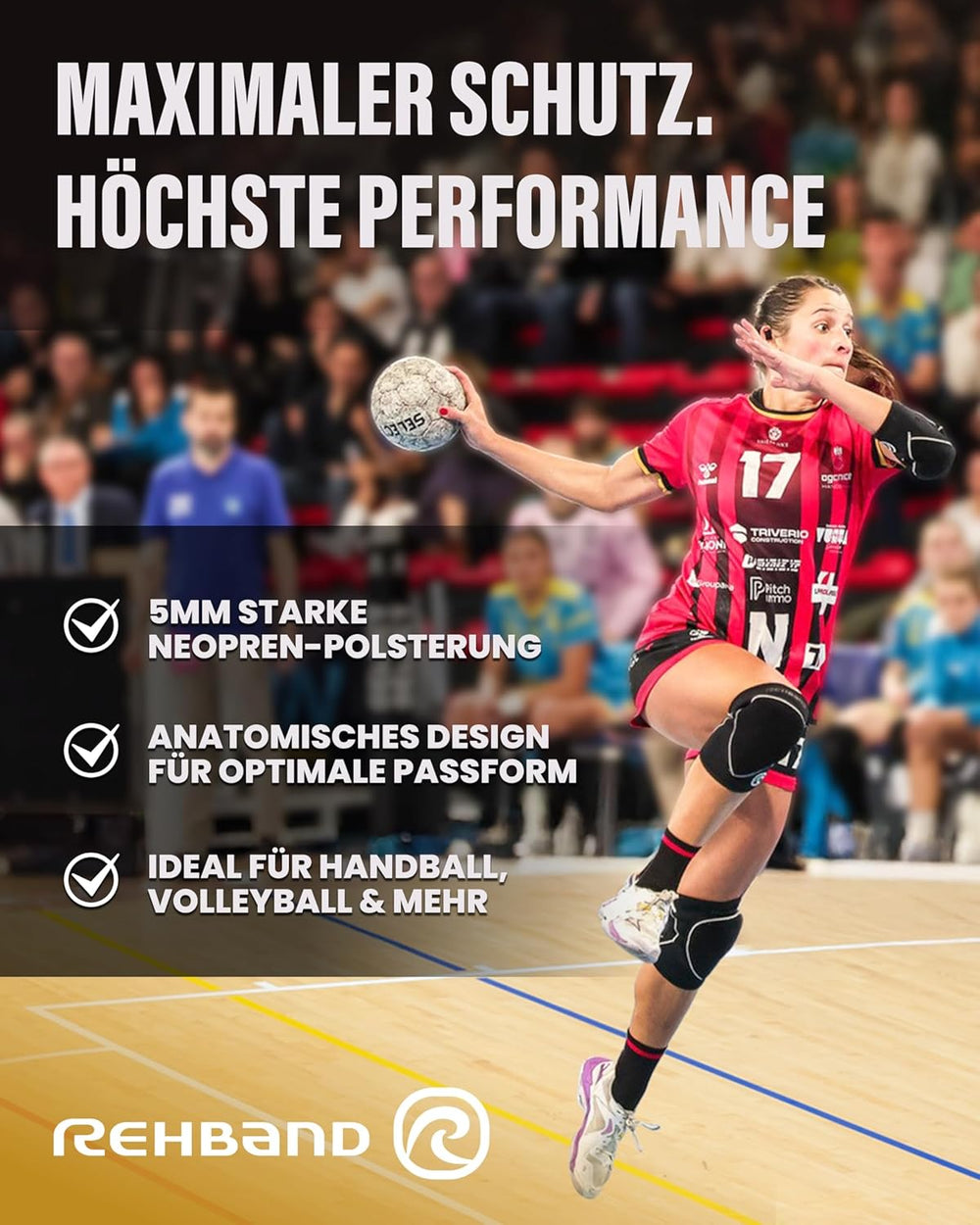 Rehband Knieschützer für Volleyball, Handball & Hallensport, Neopren Knieschoner komfortabel & engan