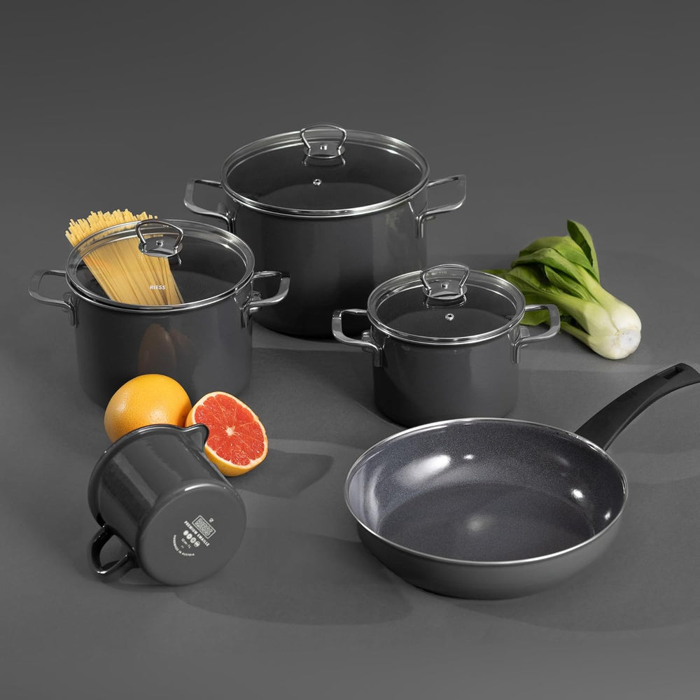 Riess Alu Dishes Reventon Fleischtopf mit Glasdeckel Induktion, Durchmesser 24 cm, Schwarz