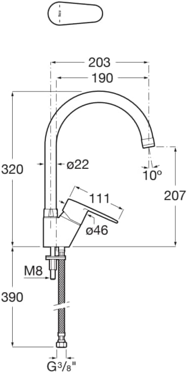 Roca L20 A5A3B09C00 Badarmatur für Waschbecken, 1 Mischhebel, glänzend, grosser Griff