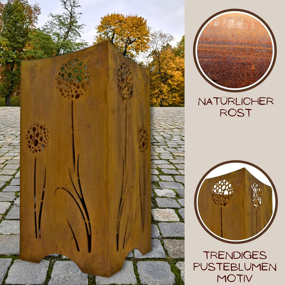Rostikal | Feuerkorb mit Pusteblumen | Feuerstelle Feuerschale aus Metall Rost für Garten und Terras