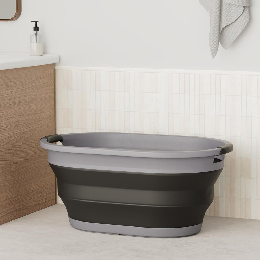 SAMMART 28L Faltbarer Wäschekorb aus Kunststoff - Ovale Wanne / Korb - Faltbarer Aufbewahrungsbehält