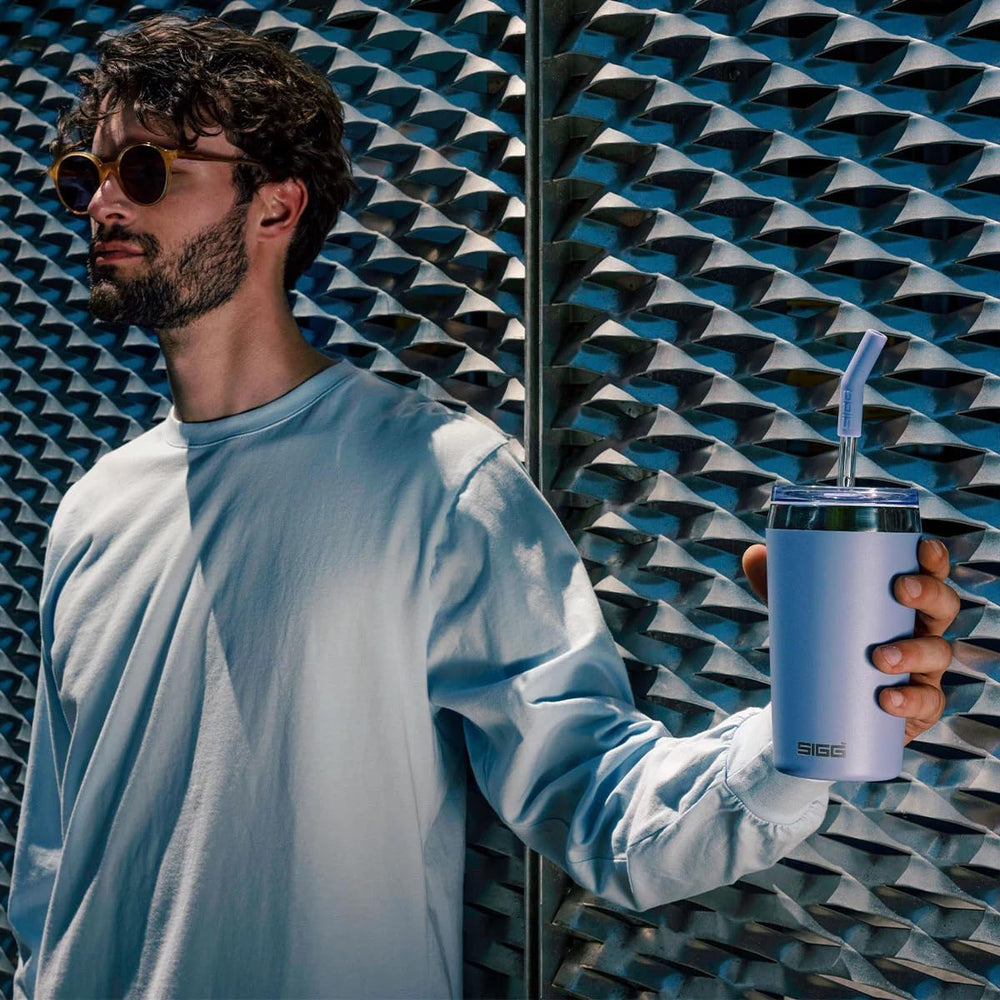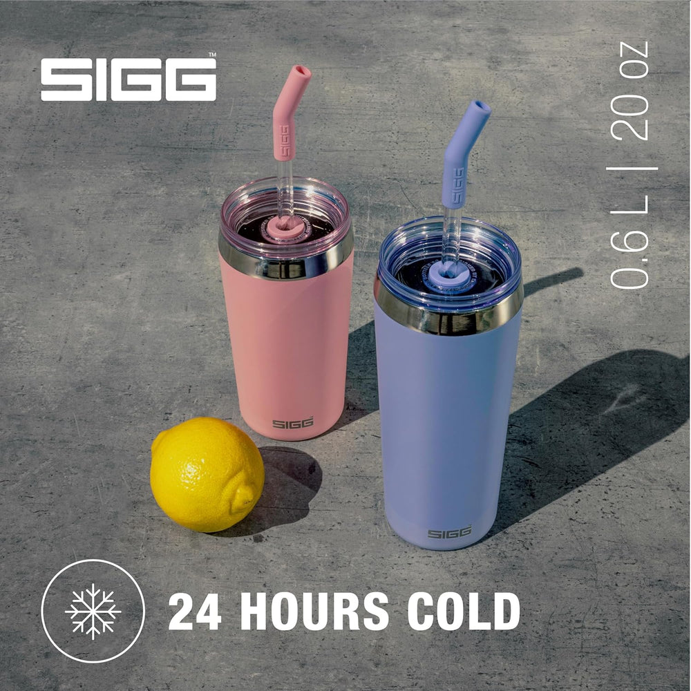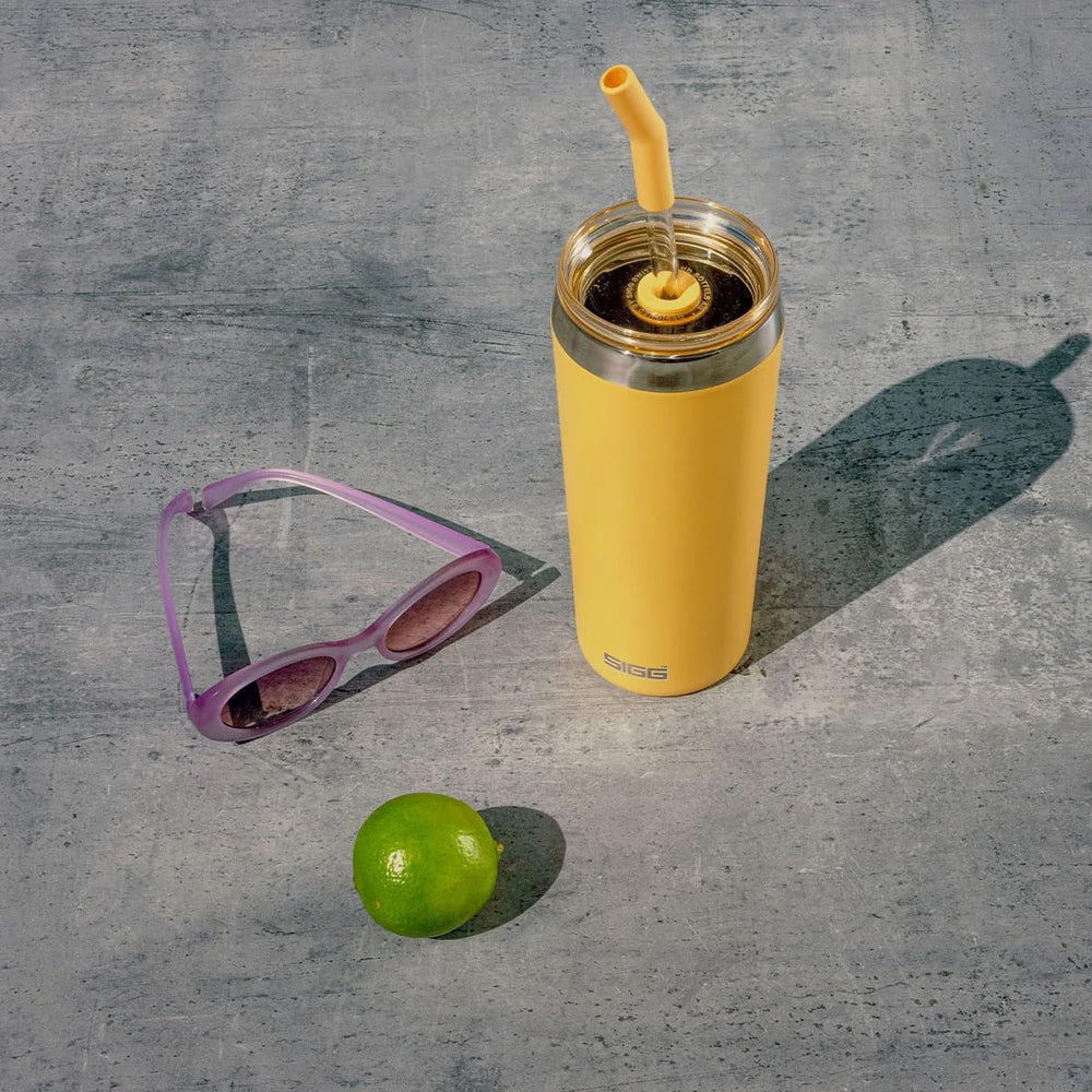 SIGG - Isolierbecher - Travel Mug Helia - Mit wiederverwendbarem Glastrinkhalm & Reinigungsbürste -