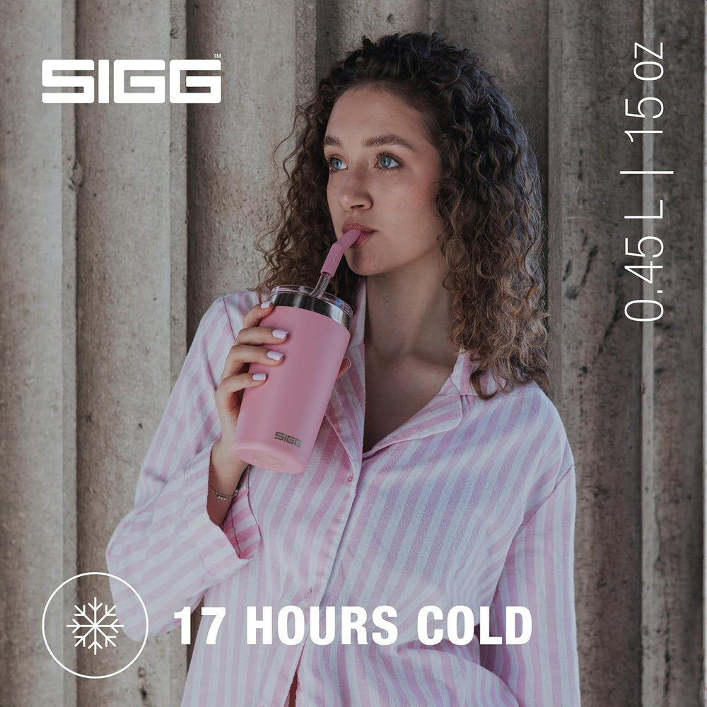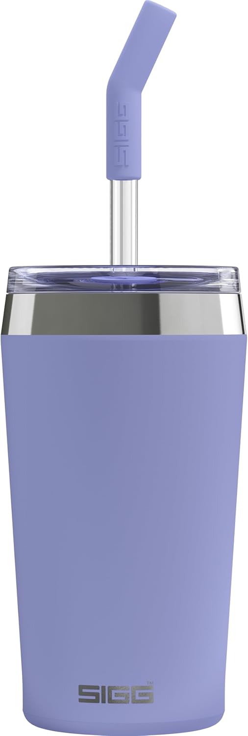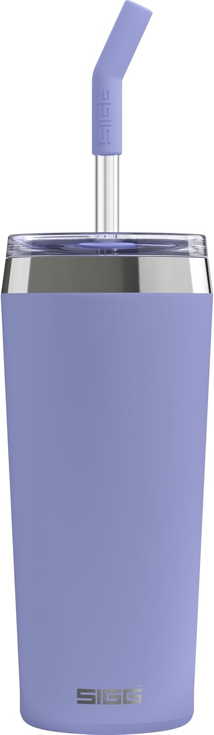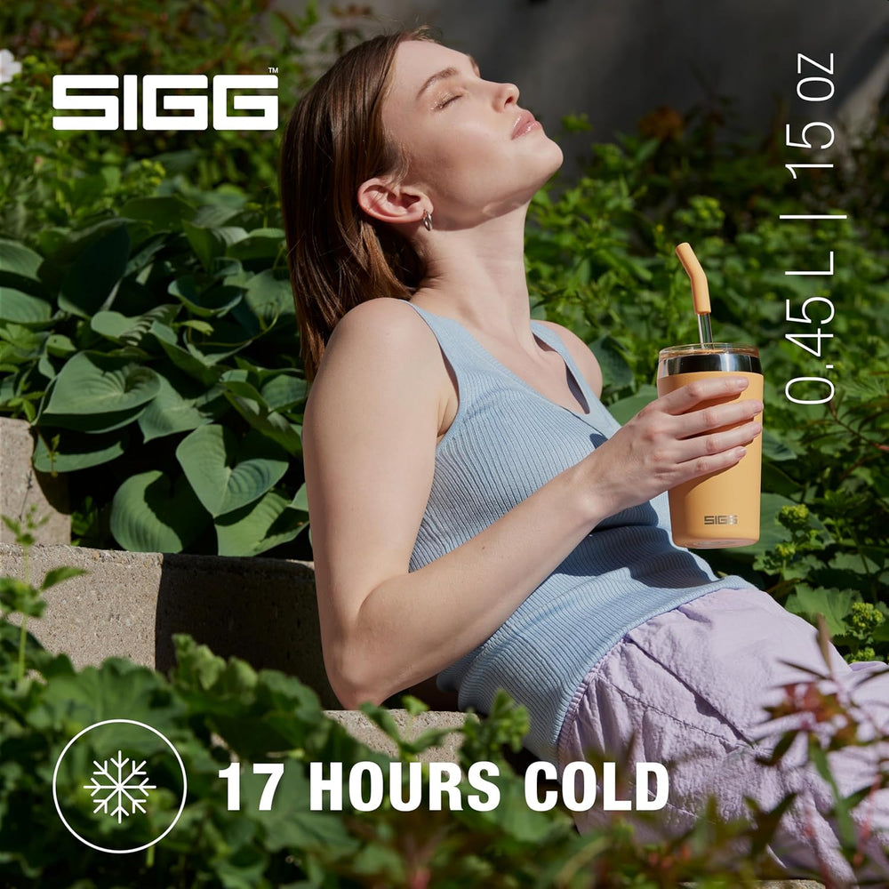 SIGG - Isolierbecher - Travel Mug Helia - Mit wiederverwendbarem Glastrinkhalm & Reinigungsbürste -