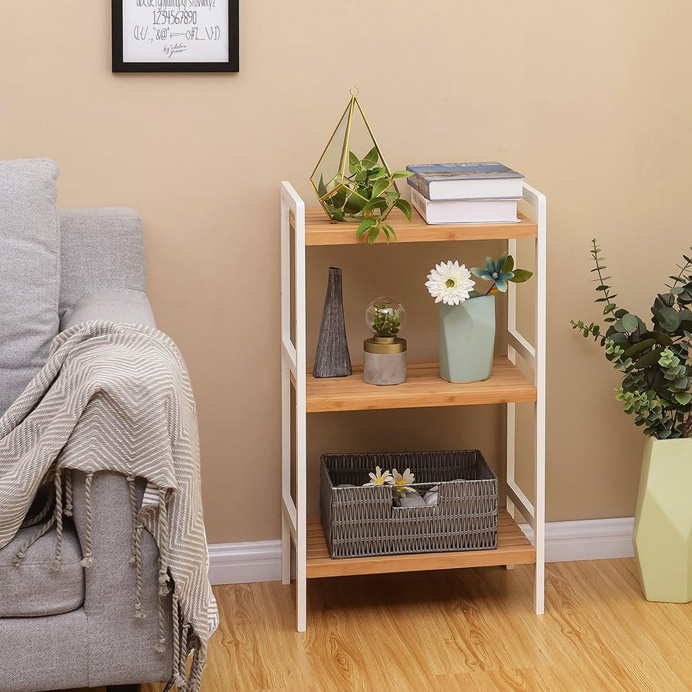 SONGMICS Bambusregal, Küchenregal, Badregal, Bücherregal, Standregal mit 3 Ablagen, 31,5 x 45 x 80 c