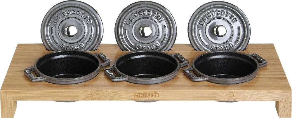Staub 40510-299-0 Servierbrett für 3 Mini-Cocottes 42 x 16 cm Servierbrett, Gusseisen, Braun, 42 x 1