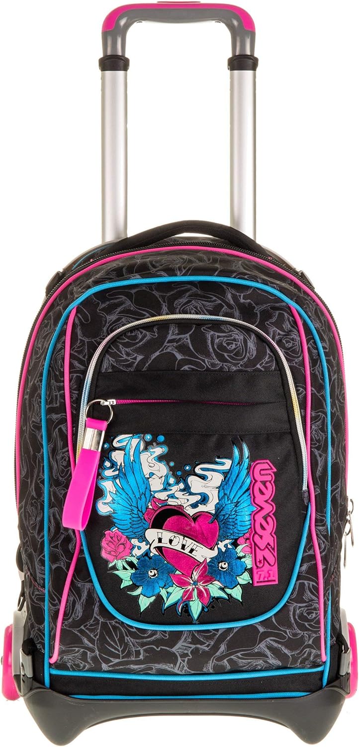 Seven Rucksack mit Trolleyfunktion, Schulranzen mit Rollen, 3 in 1, Abnehmbarer Rucksack, ab 1. Klas
