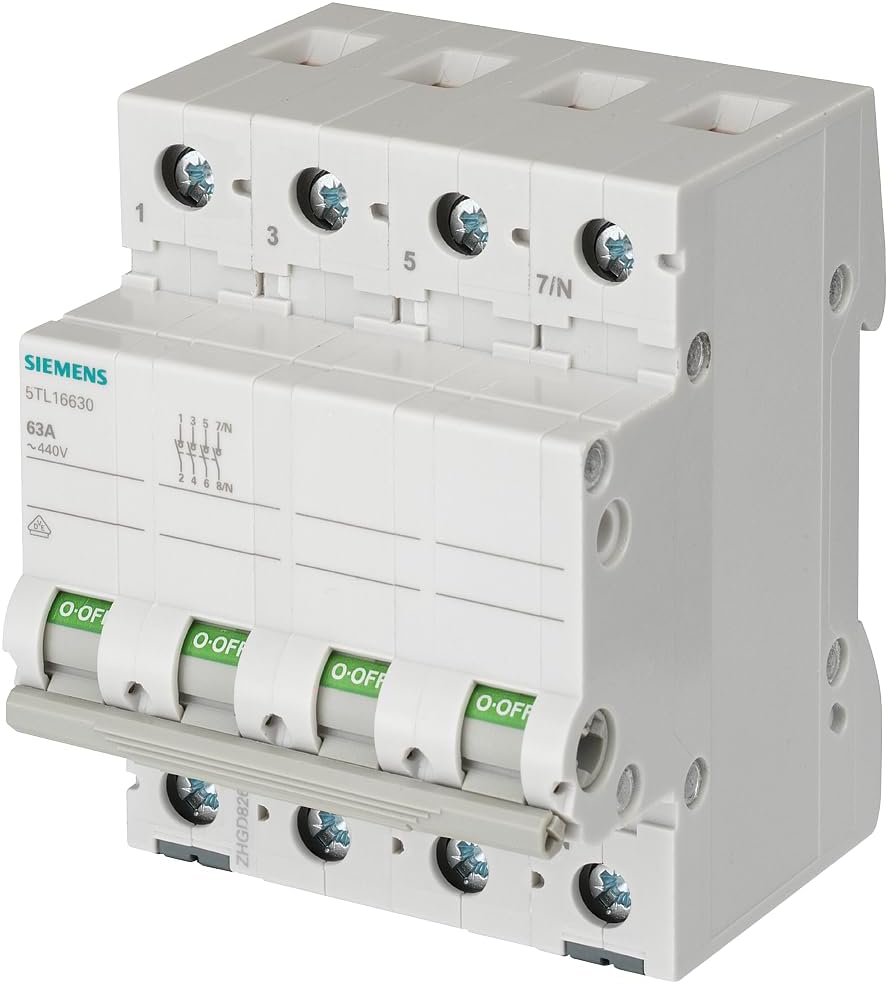 Siemens 5TL16630 Ein- und Ausschalter 63A 3P+N in 4TE 400V, Griff grau