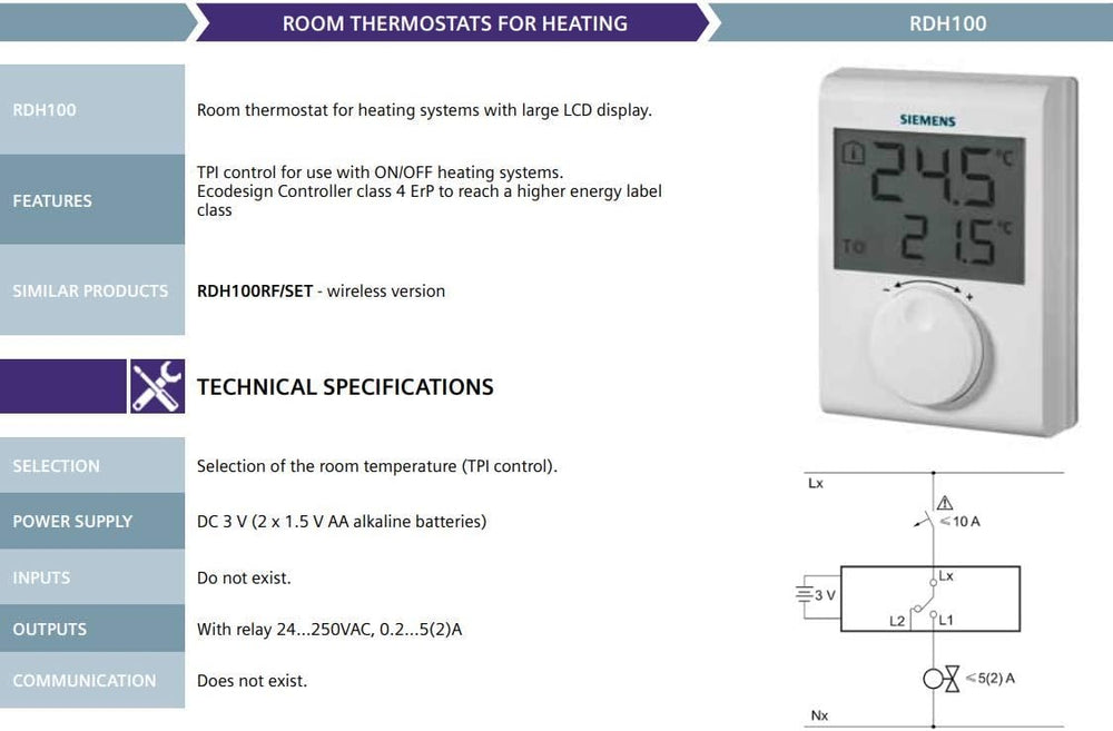 Siemens - Thermostat d ambiance électronique - RDH10 Non programmable - : RDH10