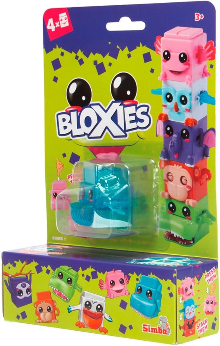 Simba 105952627 - Bloxies Figur (4 Stck.) - Tier-Bausteine zum Stapeln und Sammeln mit Bewegungseffe