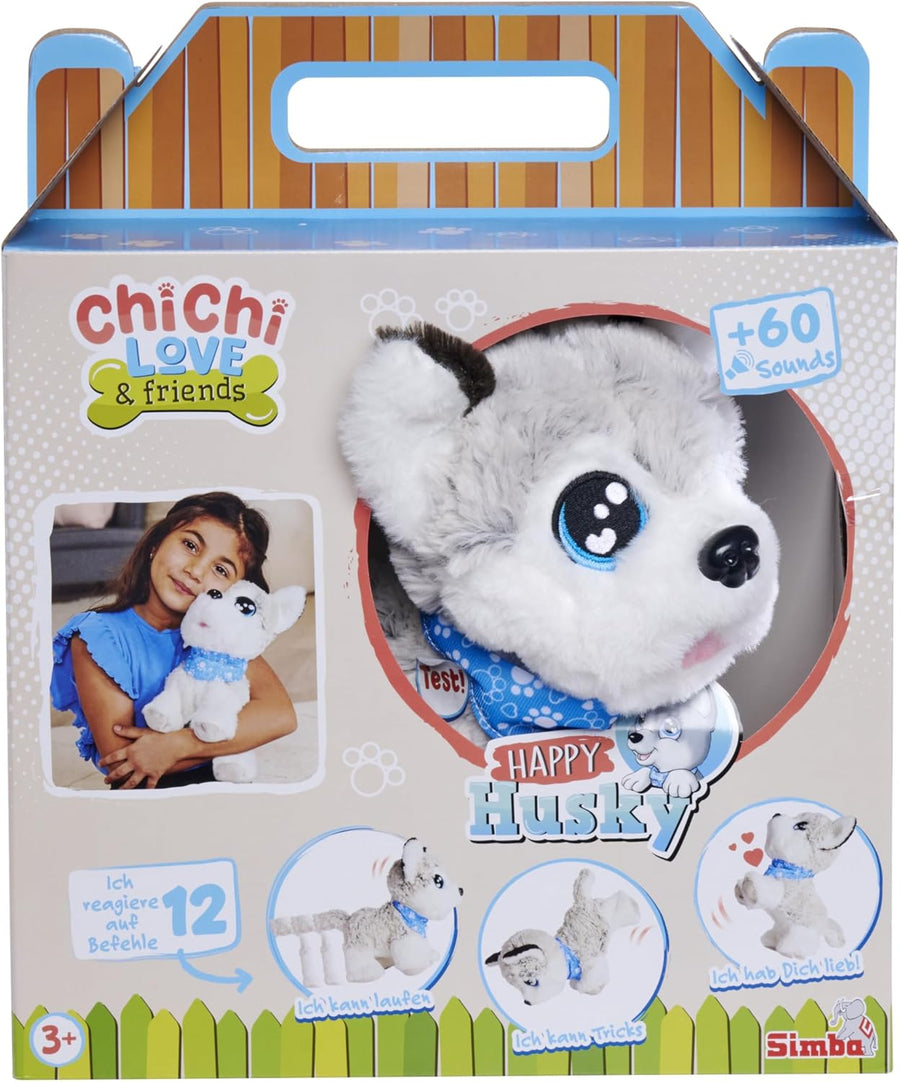 Simba 105890050 - ChiChi LOVE Happy Husky (30 cm) - interaktiver Spielzeug-Hund für Kinder ab 3 Jahr