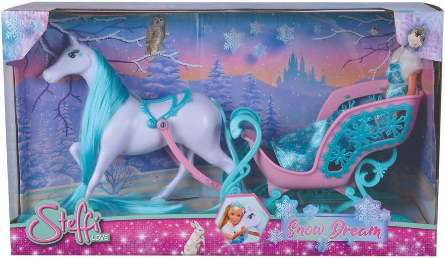 Simba 105733522 - Steffi Love Snow Dream, Märchenhafter Schlitten mit Pferd und Steffi als Eisprinze