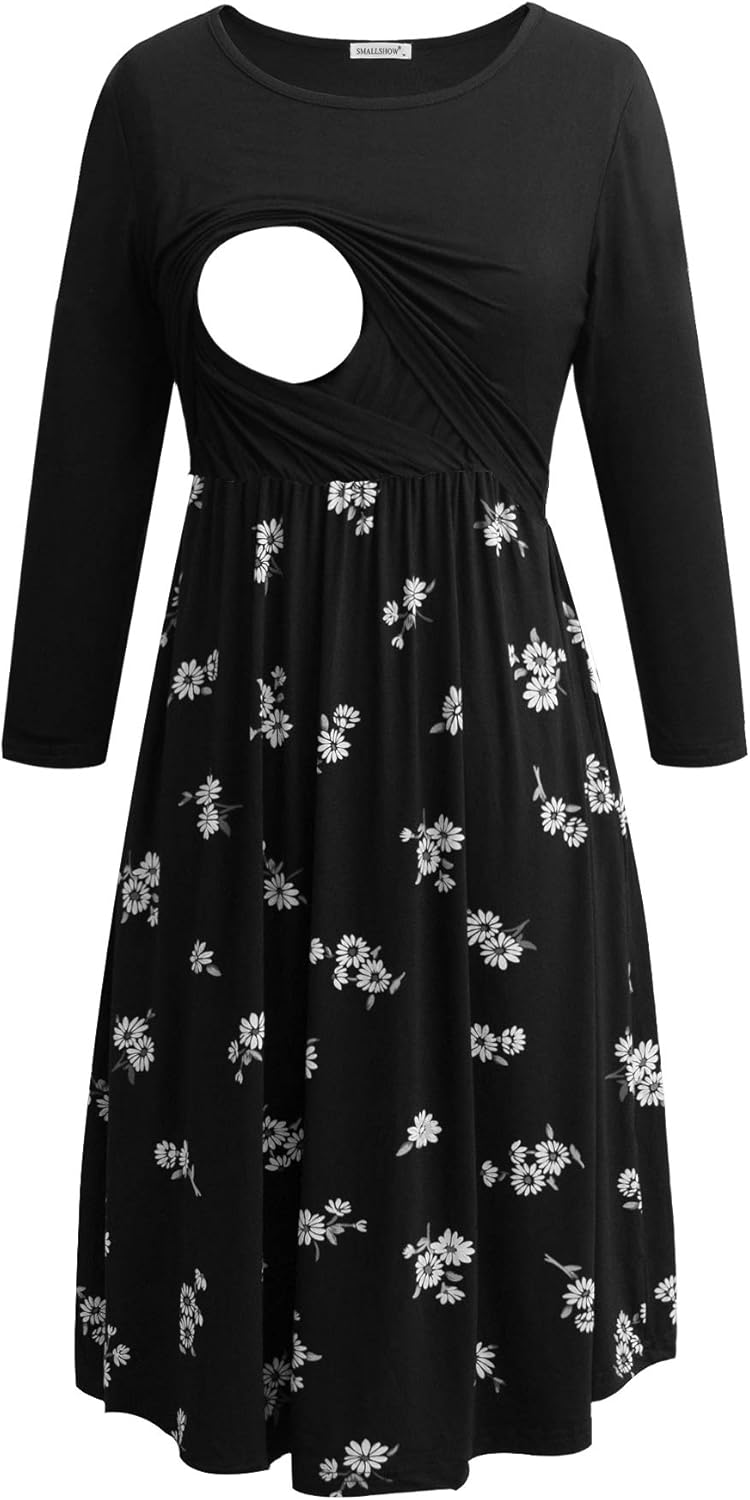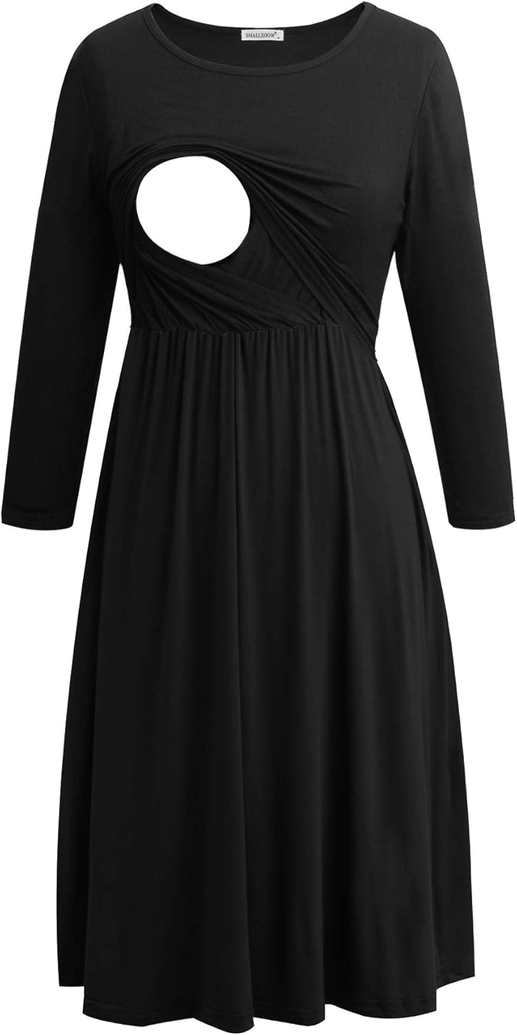 Smallshow Damen Schwangerschaftskleid Umstandsmode Kleide Umstandskleide Stillkleide Schwarz S, Schw