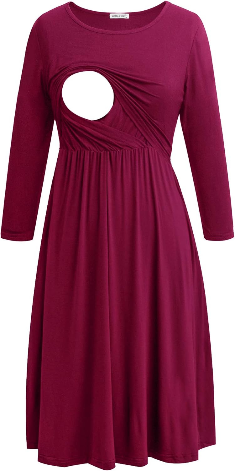 Smallshow Damen Schwangerschaftskleid Umstandsmode Kleide Umstandskleide Stillkleide Wein M, Wein M