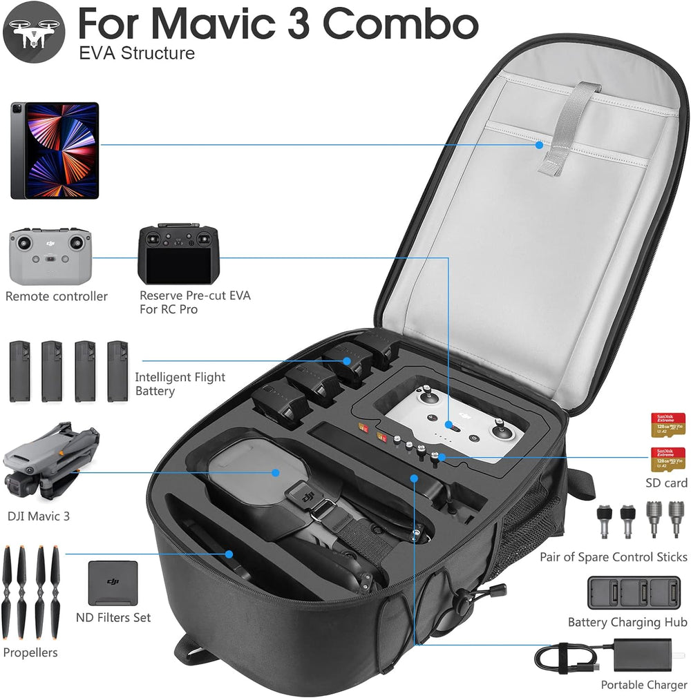 Smatree Rucksack Kompatibel mit DJI Mavic 3 Combo, Mavic 3/3E/3T Drohnentasche, Mavic 3 Tasche,wasse