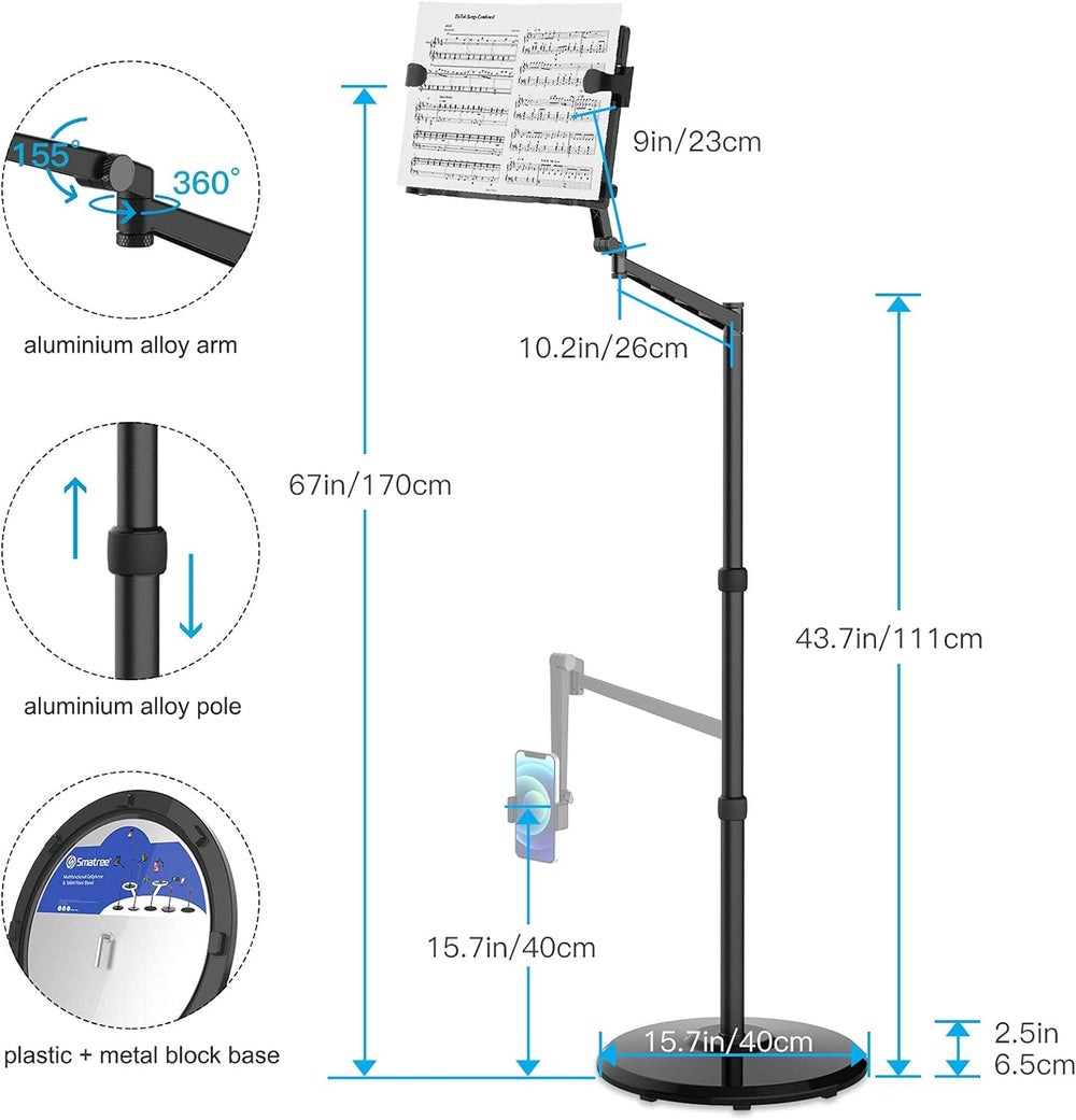 Smatree Notenständer iPad Floor Stand, iPad Mini 6 8,3 Zoll Mount Holder 360 Grad Drehbar Höhenverst