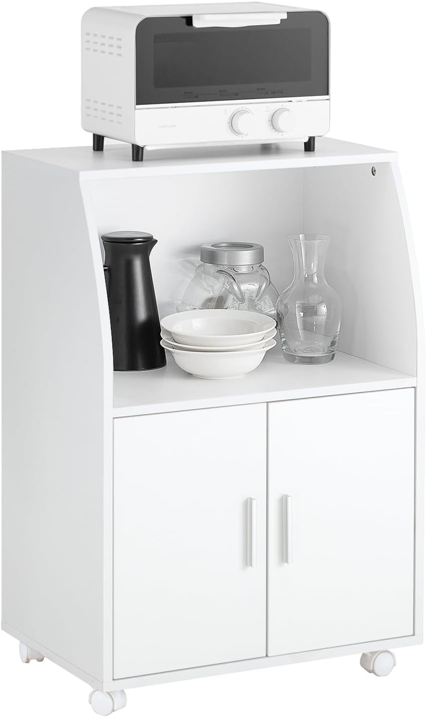 SoBuy FRG12-W Küchenwagen mit 3 Ablagen und 2 Türen Mikrowellenschrank Küchenschrank Rollschrank wei