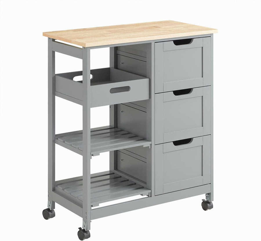 SoBuy FKW119-WN Küchenwagen mit Arbeitsplatte Servierwagen mit Rollen Rollwagen Küche Kücheninsel Kü