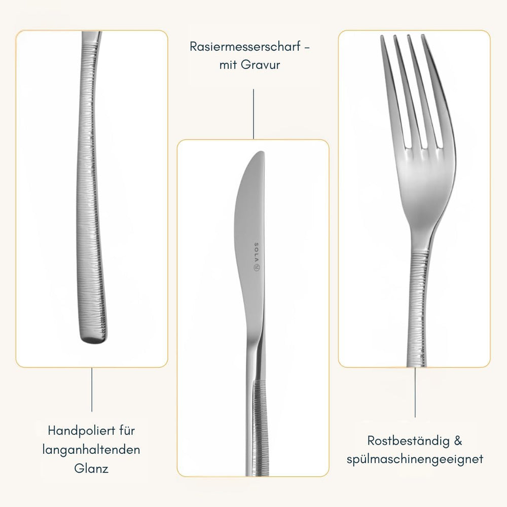Sola Hermitage Besteck Set - 6 Personen Essbesteck - 50 Teilig, 18/10 Rostfreiem Stahl - Robustes &