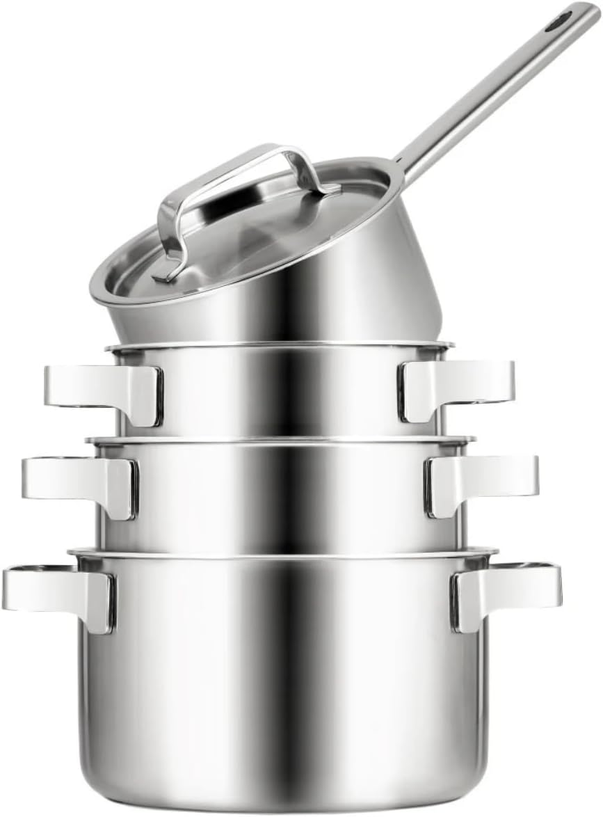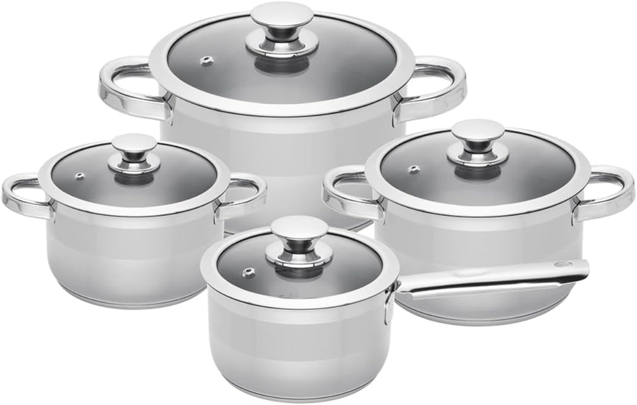 Sola Ruby Topfset 4-Teilig, Kochtopf set mit Deckel - 18/10 Hochglänzendem Edelstahl - Kochgeschirr