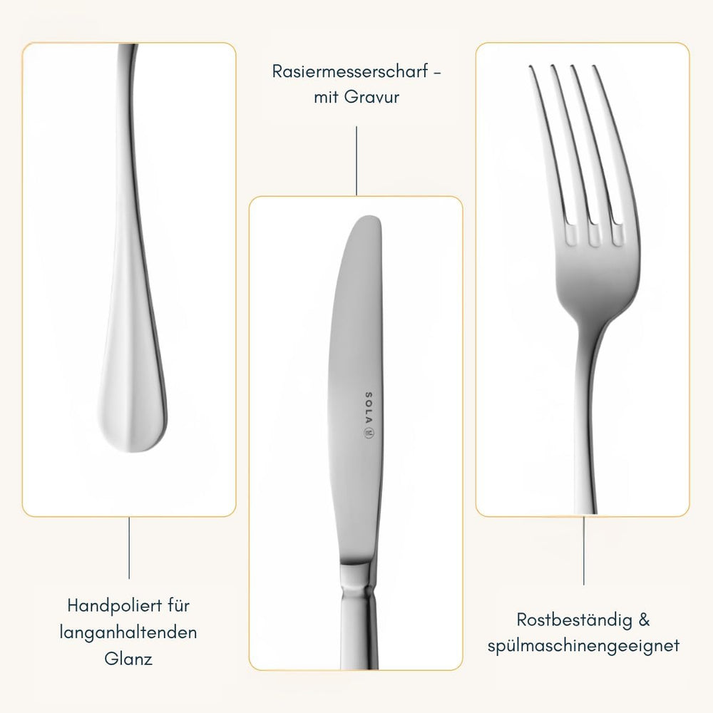 Sola Hollands Glad Besteck Set - 6 Personen Essbesteck - 24 Teilig, 18/10 Rostfreiem Stahl - Robuste