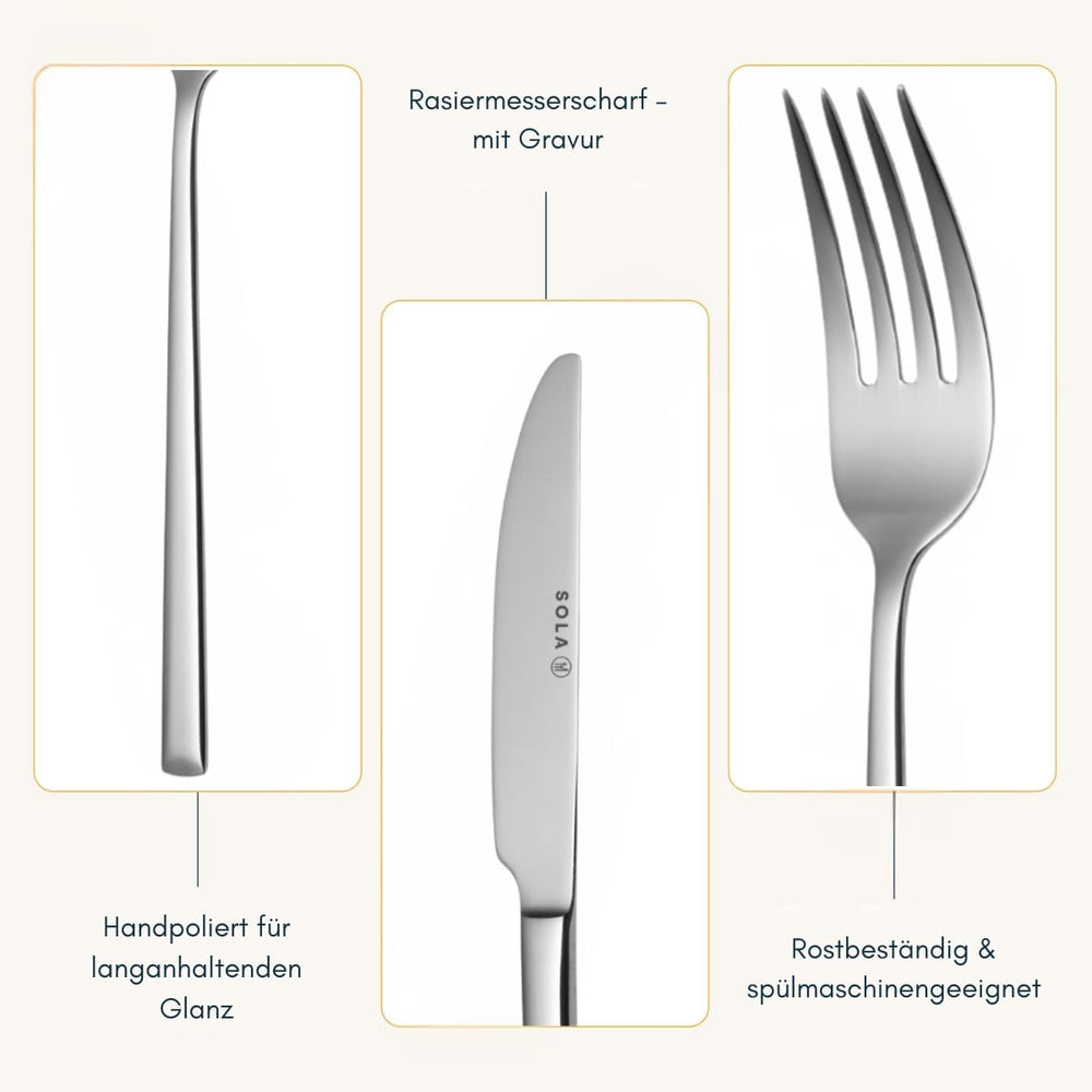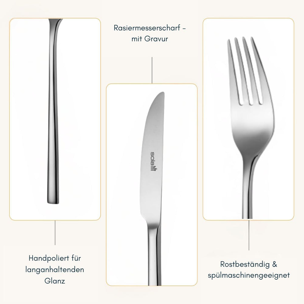 Sola Montreux Besteck Set - 6 Personen Essbesteck - 50 Teilig, 18/10 Rostfreiem Stahl - Robustes und